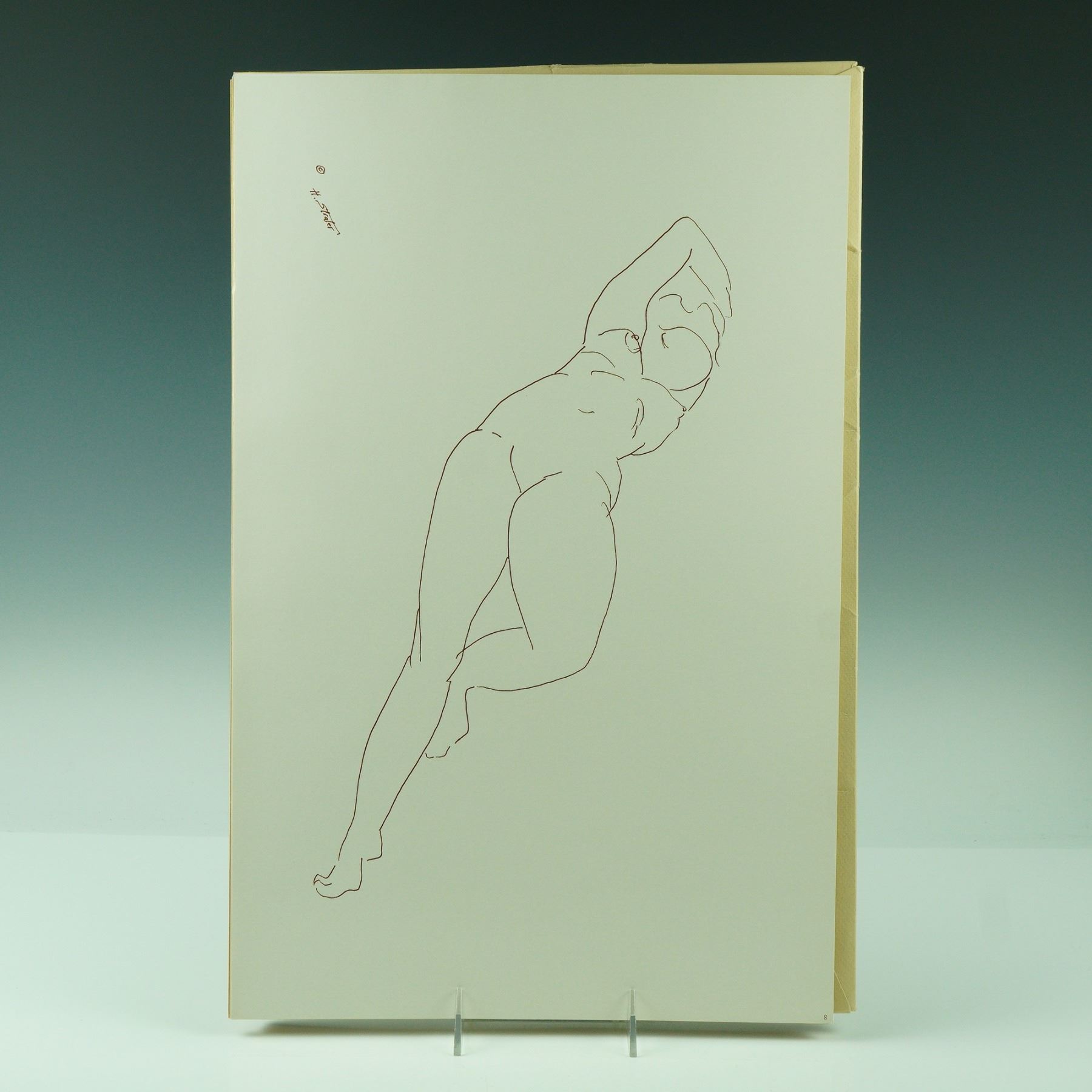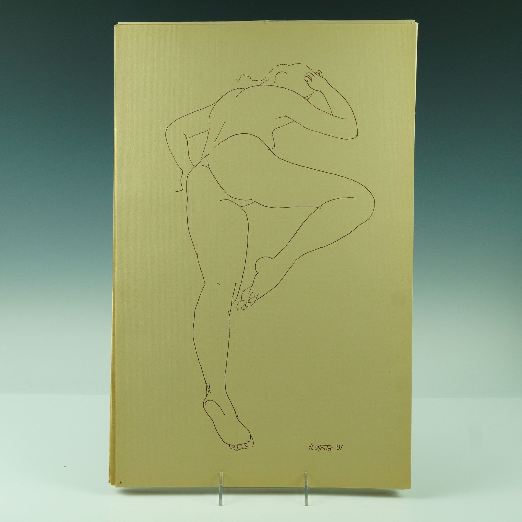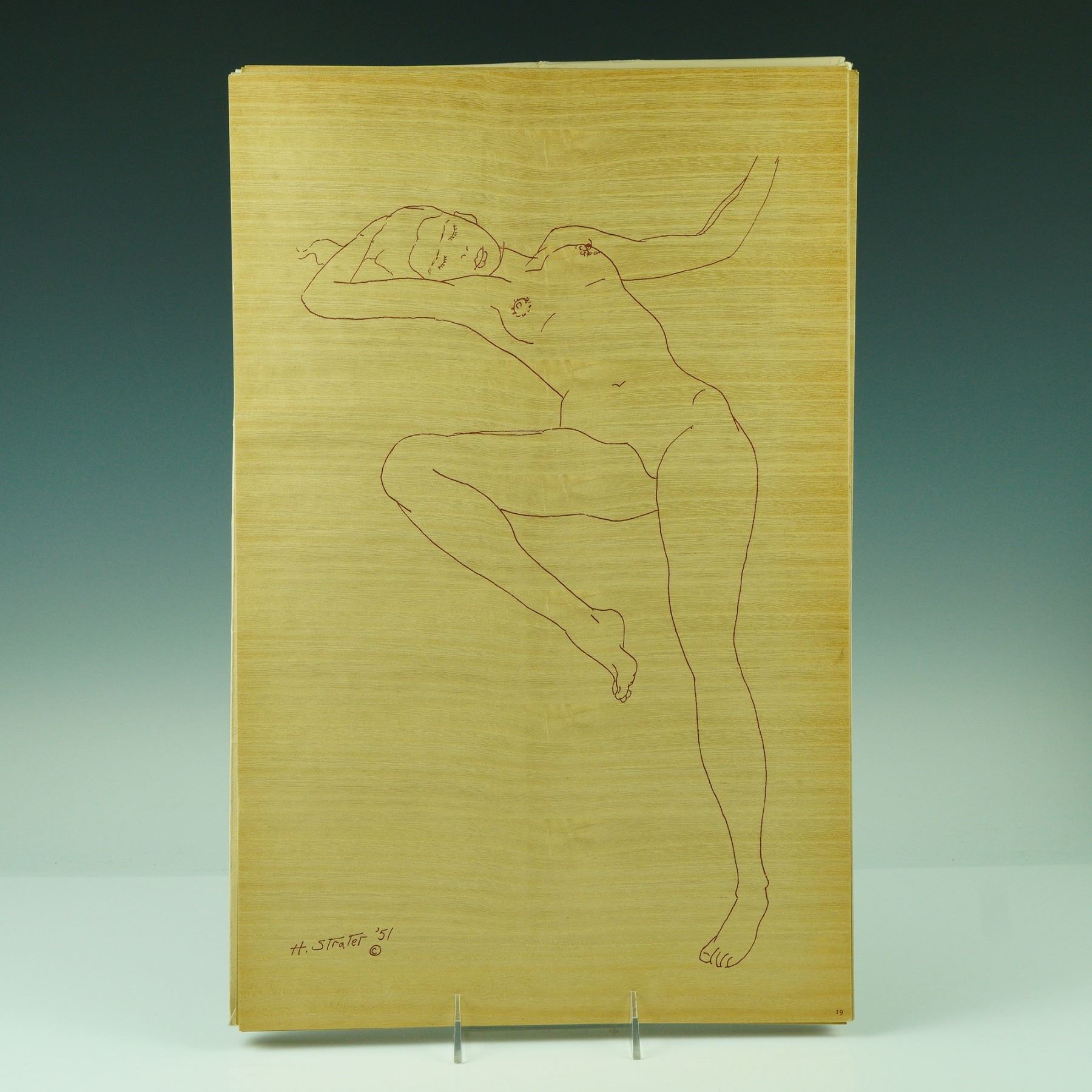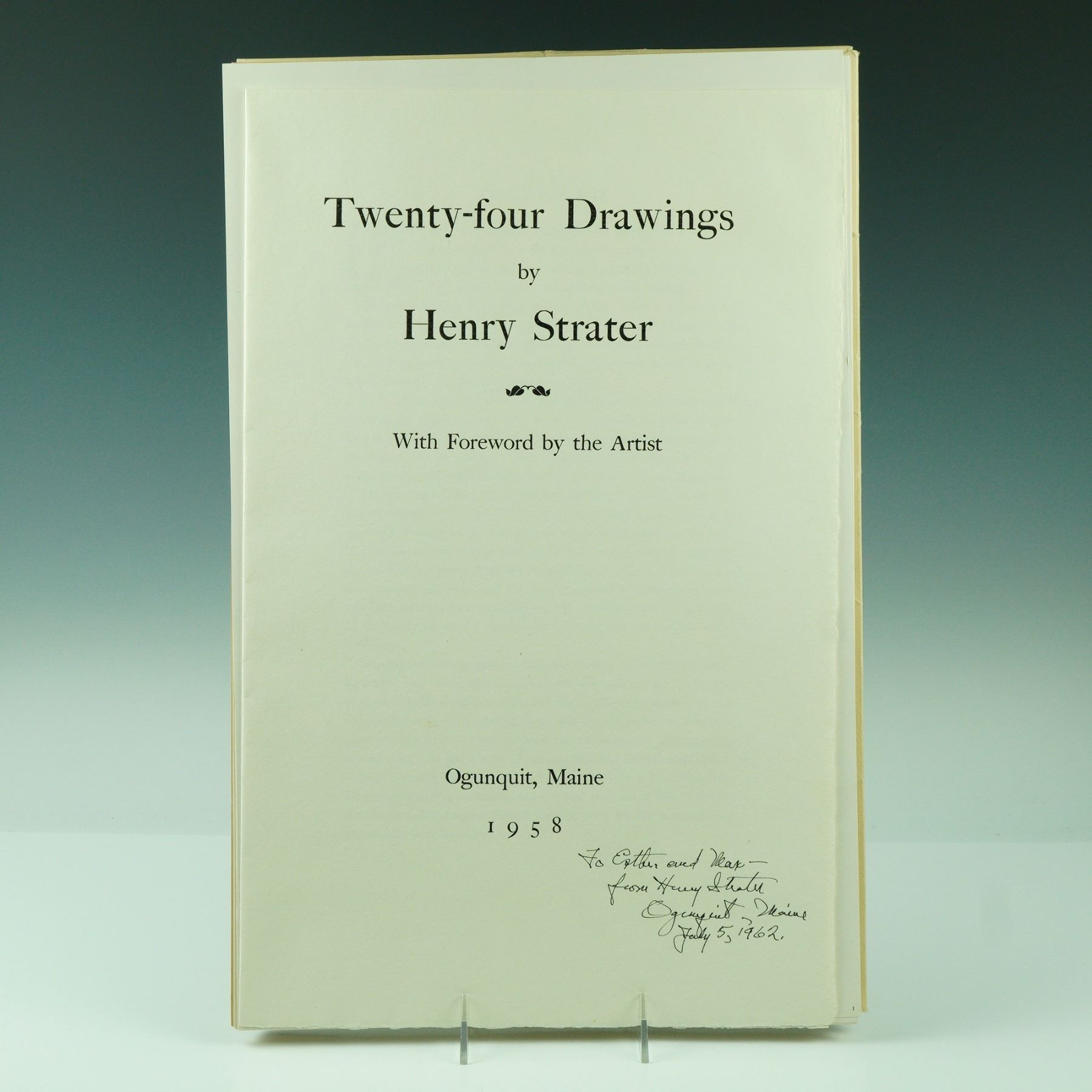 A rare signed and dedicated 1958 edition of A Portfolio: 24 Drawings by American artist Henry Strater, published in Ogunquit, Maine. This exceptional collection showcases Strater's mastery of line through a series of elegant, minimalist figure studies and portraits, including works dated as early as 1921 and 1951. The title page bears a personal inscription from Strater, adding a unique provenance to this already scarce volume. Known as a painter, illustrator, and close friend of Ernest Hemingway, Henry Strater was a central figure in the Ogunquit art colony and a champion of modernist expression. His work reflects both academic training and a dynamic modern sensibility, often celebrated for its refined economy of line and emotive presence. This signed portfolio offers not only a striking visual experience but also an intimate connection to the artist himself, making it a remarkable acquisition for collectors of mid-century American art and illustration.