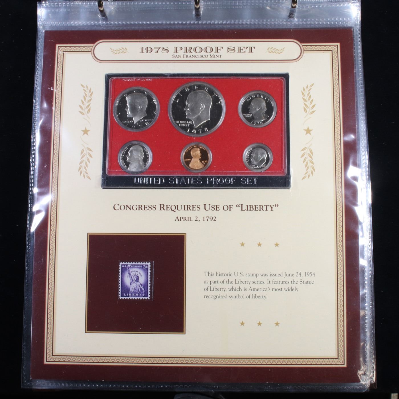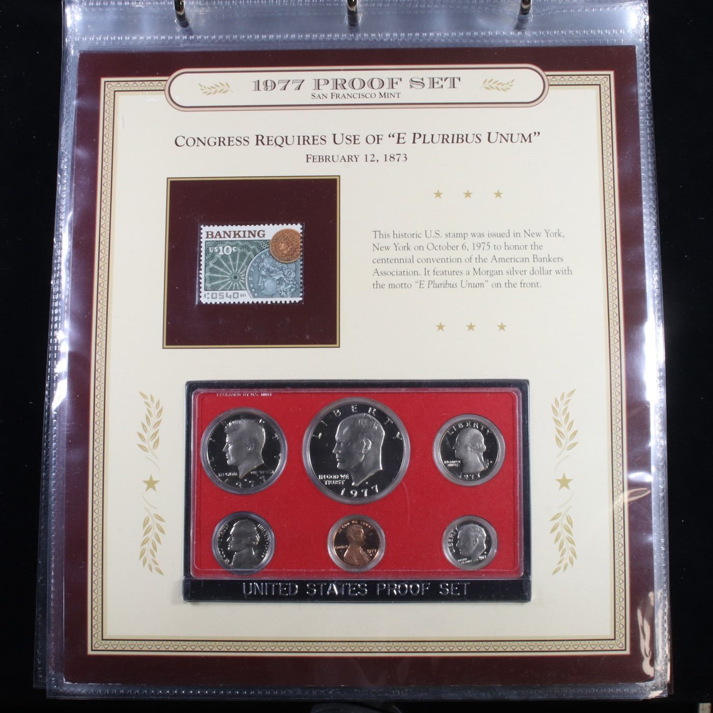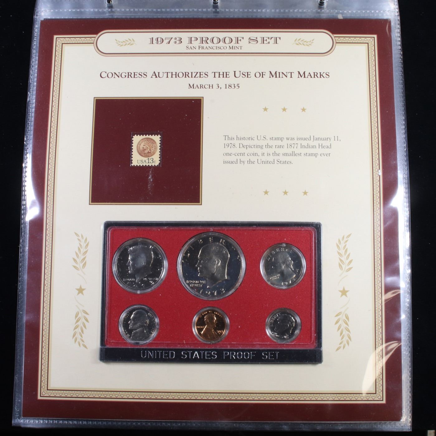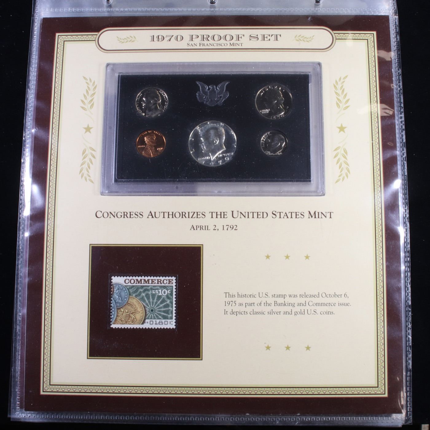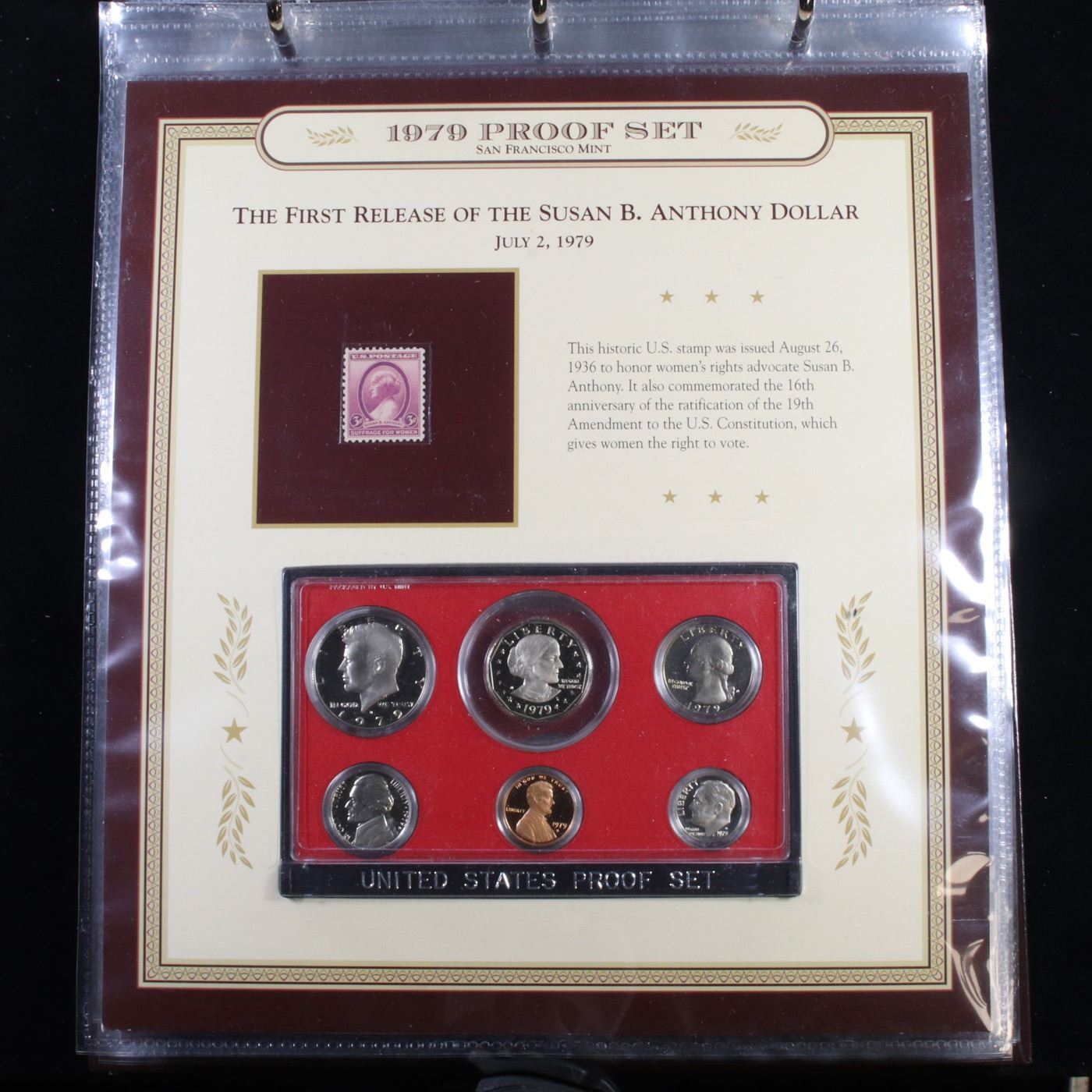 A Postal Commemorative Set, 25 Years Of Americas Finest Coinage Incomplete, in a brown binder Grades. A Postal Commemorative Set, 25 Years Of Americas Finest Coinage Incomplete, in a brown binder. A Postal Commemorative Society set. The set is not complete. It contains 14 years of proof sets mounted on an informational card with a commemorative stamp corresponding to the same year as the proof set.All housed in a brown vinyl binder. The years included are 1970, 1973, 1974, 1975, 1976, 1977, 1978, 1979, 1981, 1986, 1990, 1991, and 1992.