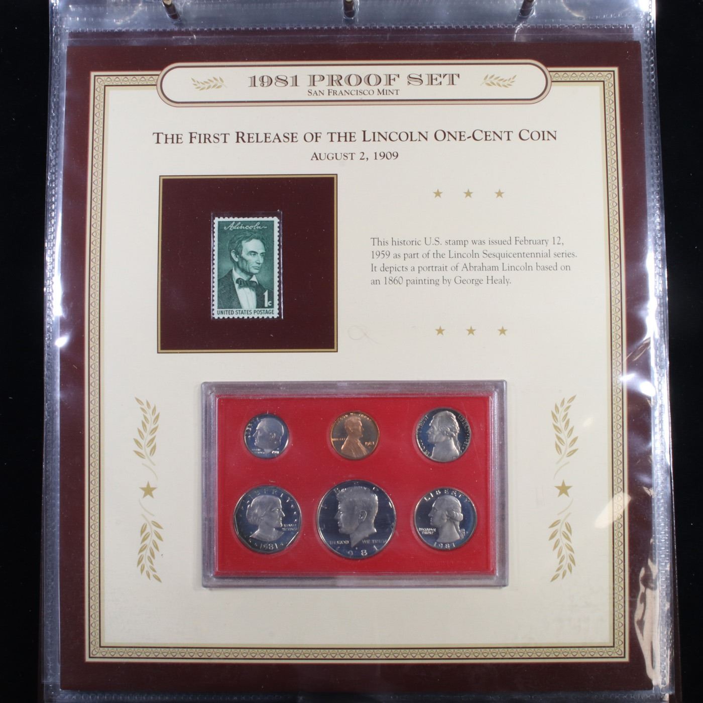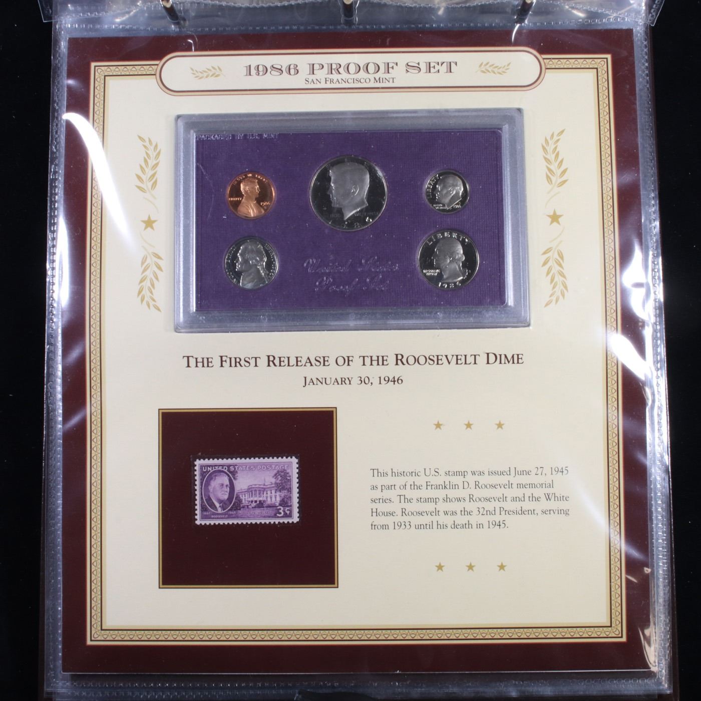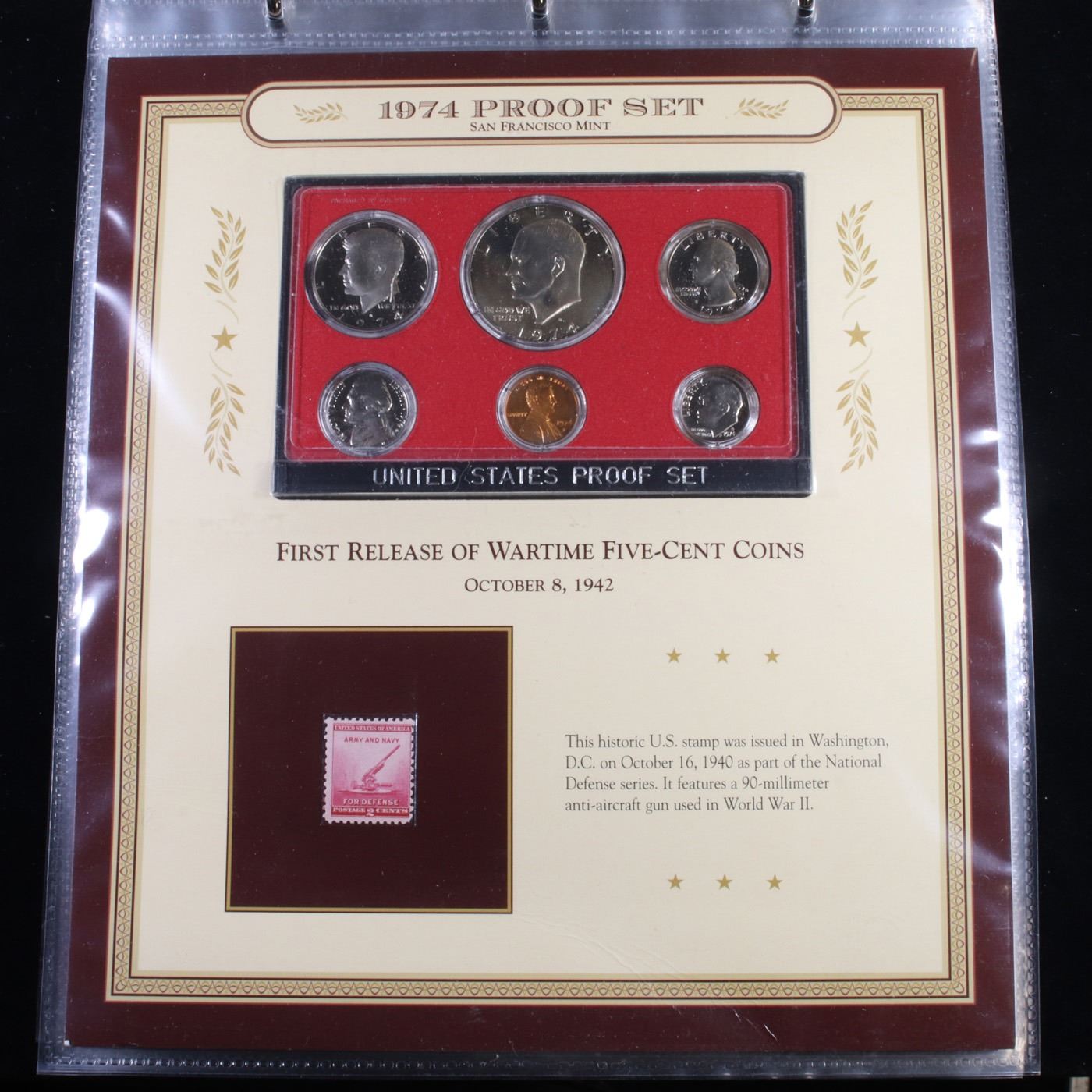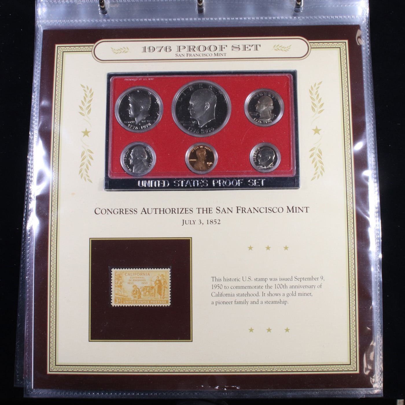 A Postal Commemorative Set, 25 Years Of Americas Finest Coinage Incomplete, in a brown binder Grades. A Postal Commemorative Set, 25 Years Of Americas Finest Coinage Incomplete, in a brown binder. A Postal Commemorative Society set. The set is not complete. It contains 14 years of proof sets mounted on an informational card with a commemorative stamp corresponding to the same year as the proof set.All housed in a brown vinyl binder. The years included are 1970, 1973, 1974, 1975, 1976, 1977, 1978, 1979, 1981, 1986, 1990, 1991, and 1992.