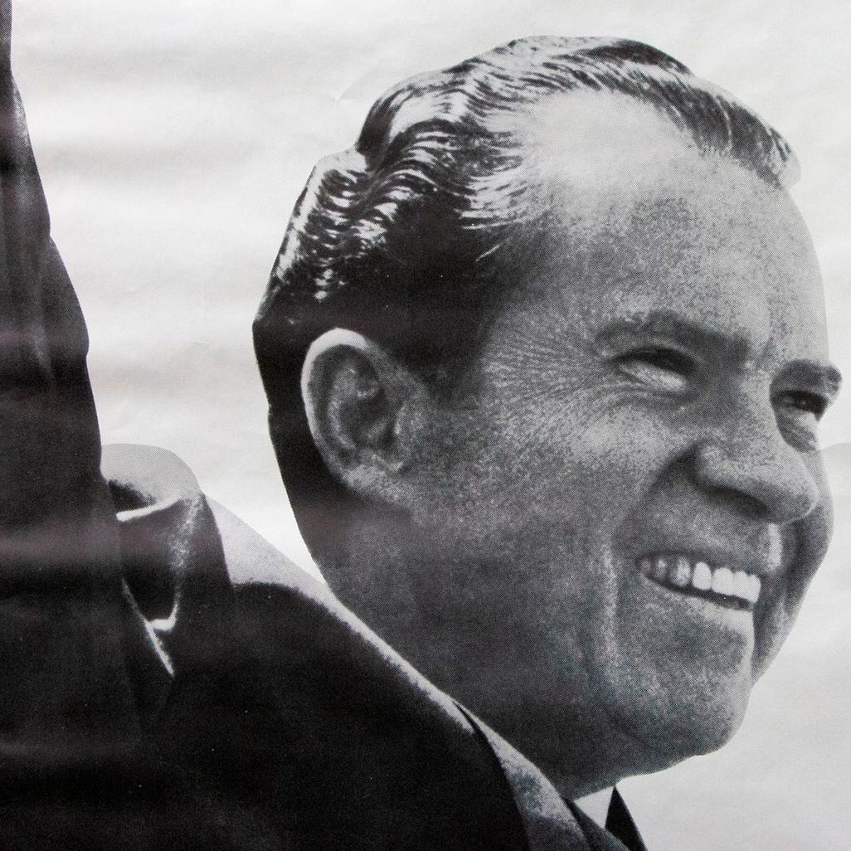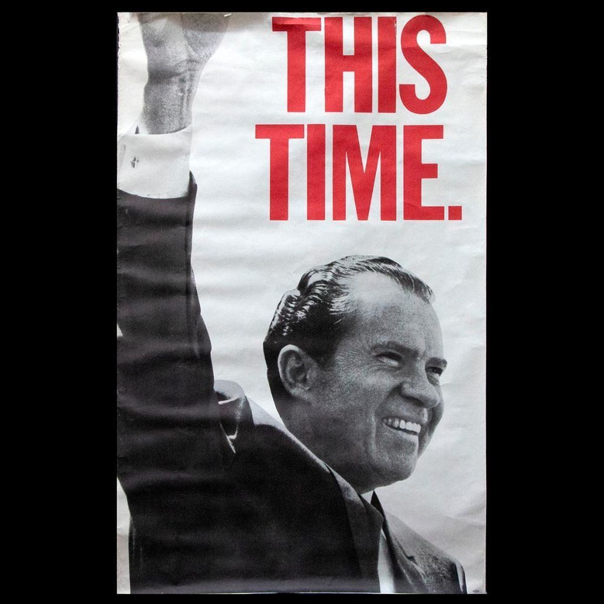 A vintage poster of Richard Nixon measuring 66 1/2 inches high x 42. Small tear at top.