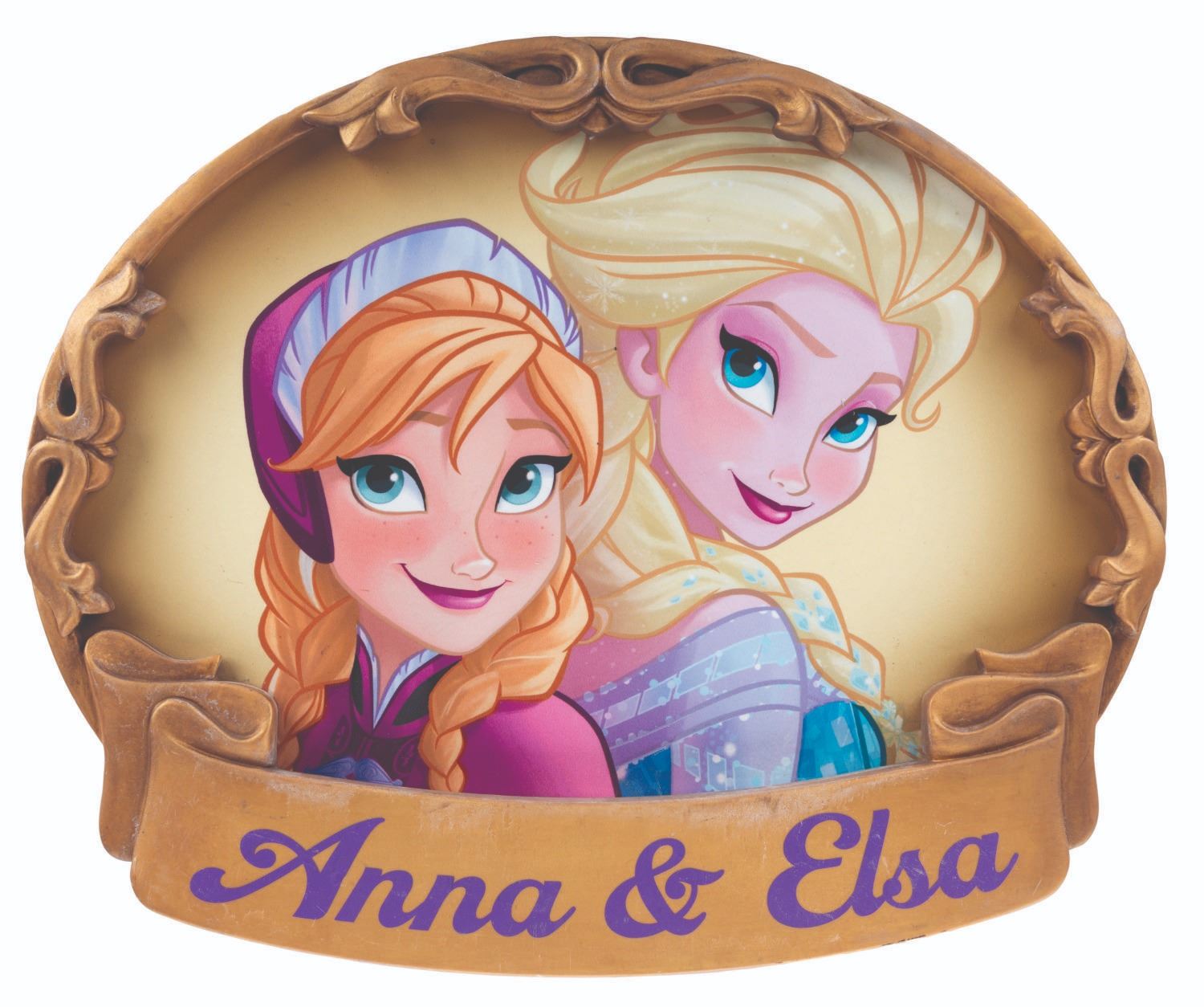 (Walt Disney World, 2013) A portrait sign from the “Frozen” Anna and Elsa meet and greet at Princess Fairytale Hall in the Magic Kingdom. The double portrait was displayed with a FastPass clock above the entrance. Measuring 12" x 14.75", the portrait is in very good condition with light wear including scuffs from Park use.