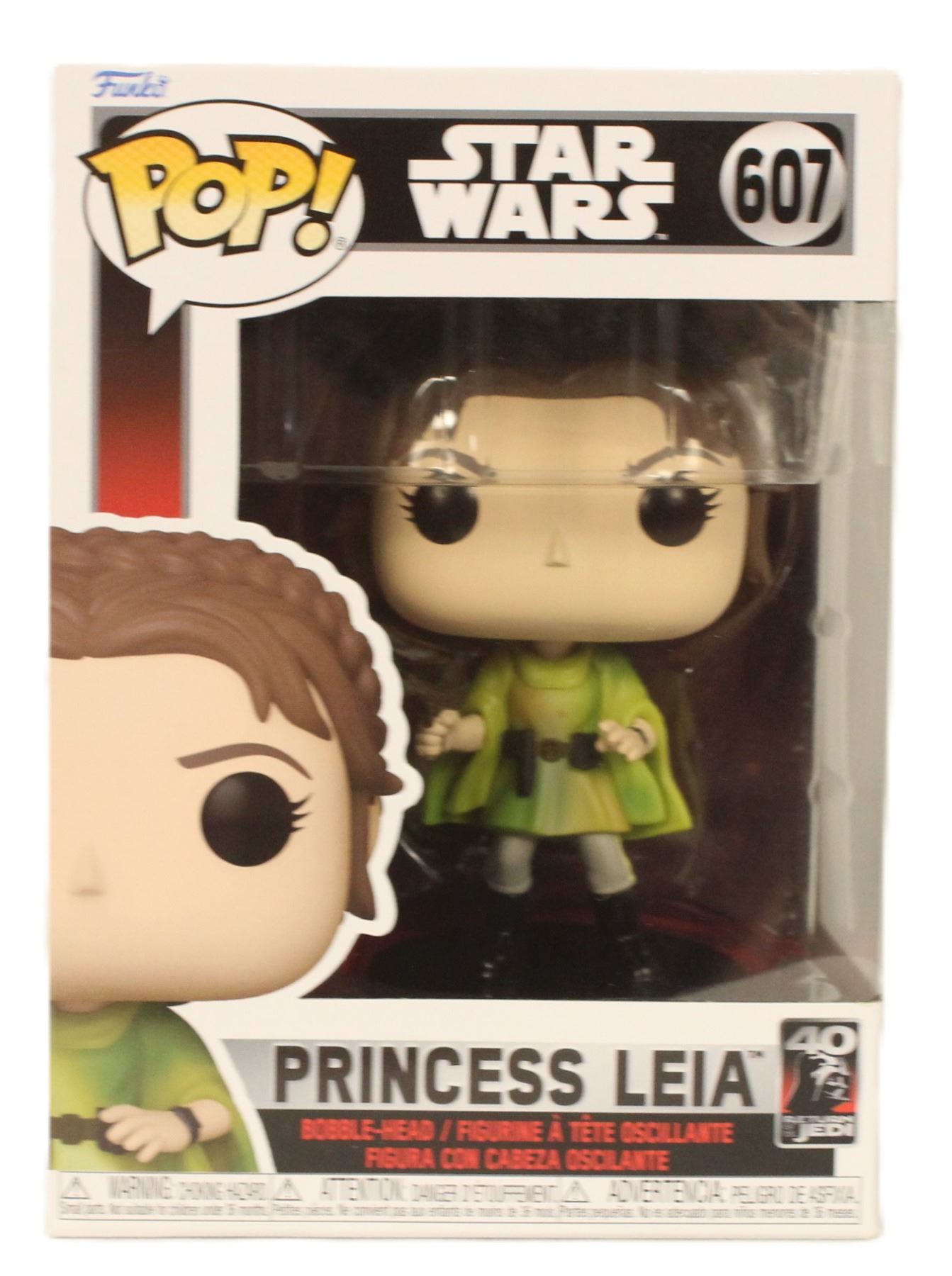 This is an excellent condition Princess Leia Funko Pop. Princess Leia was introduced in Star Wars: Episode IV A New Hope. This Pop celebrates the 40th anniversary of Return of the Jedi.