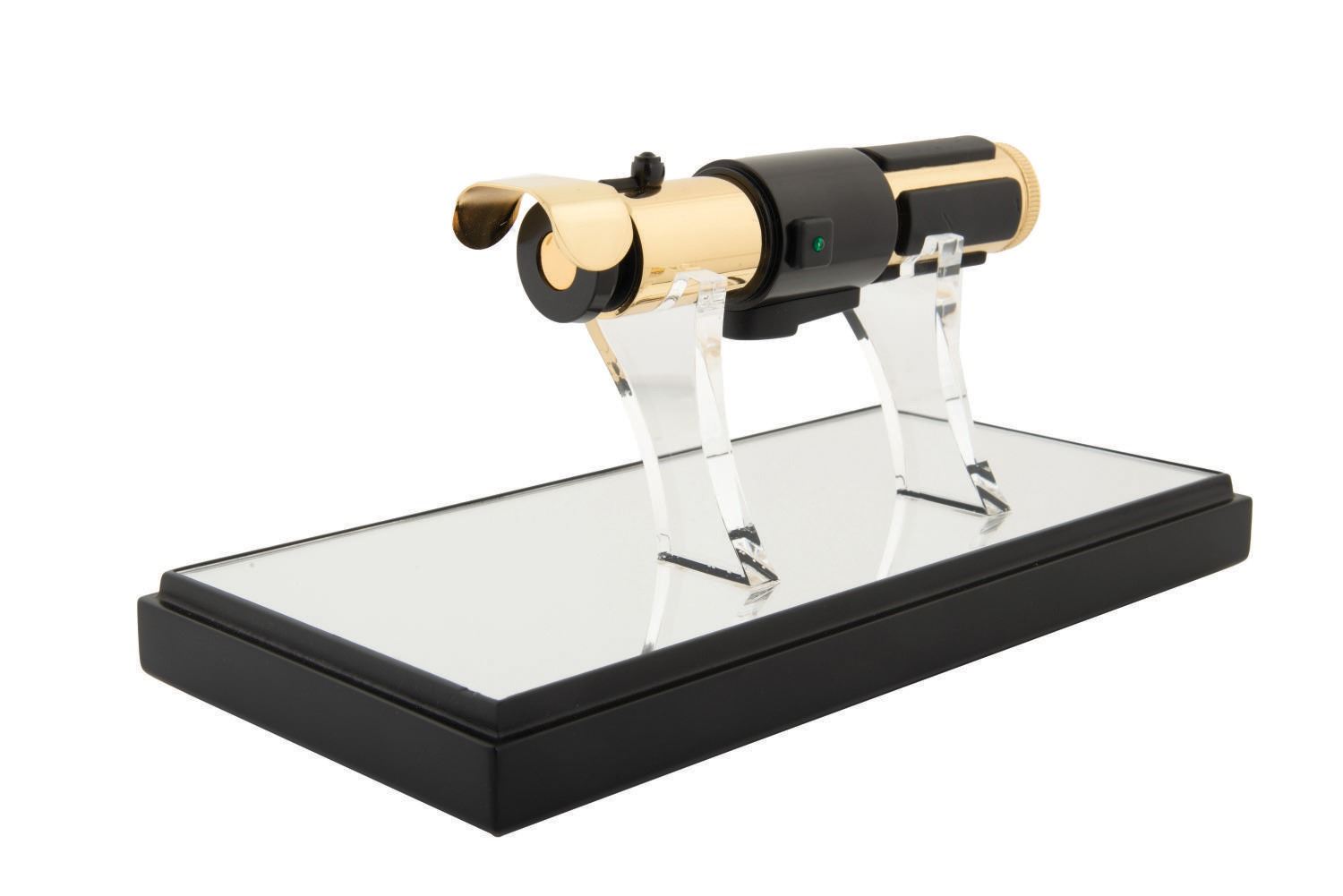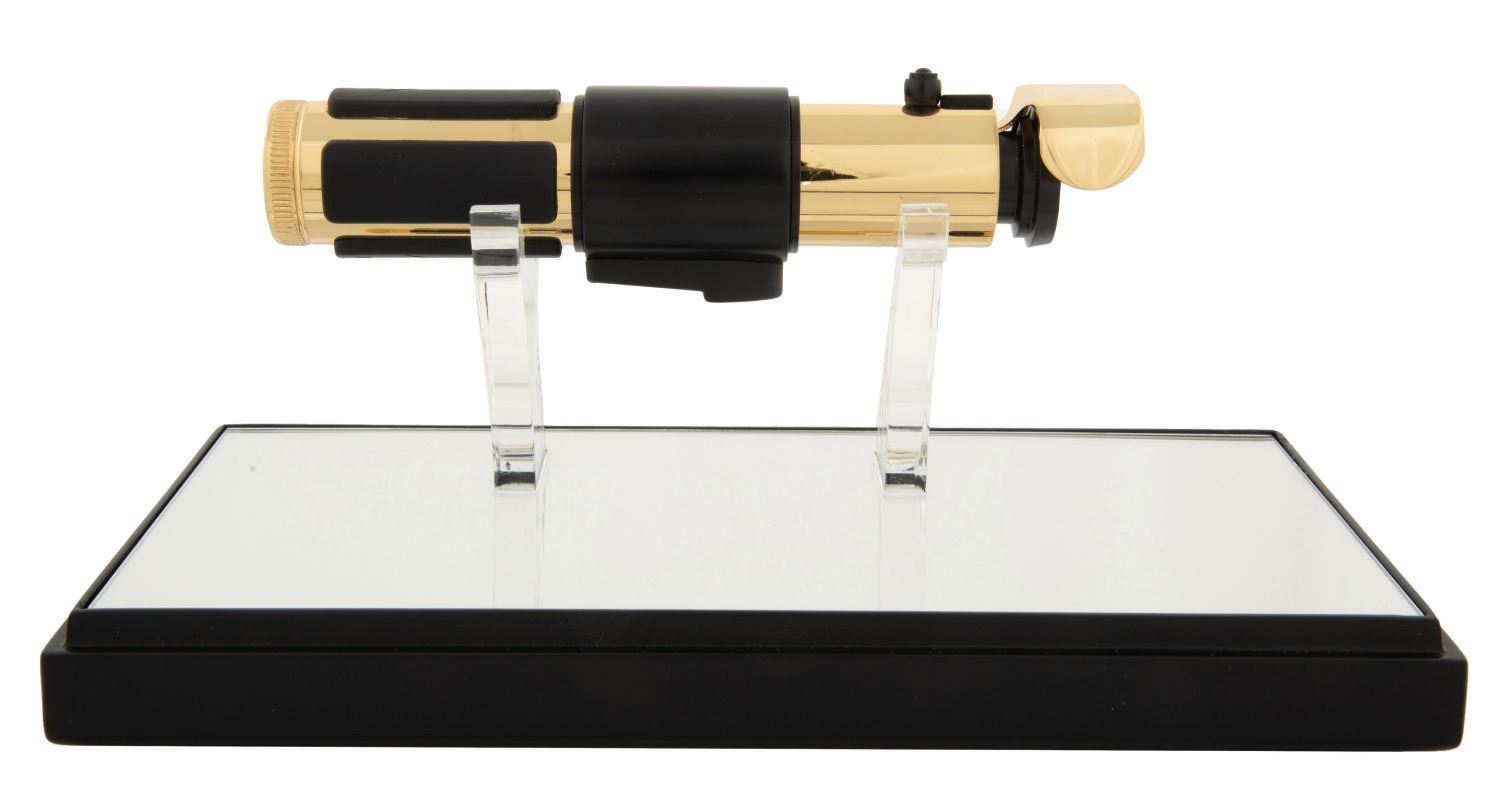 (Master Replicas, 2005) A prototype of a gold-plated Yoda Lightsaber never produced for the public. The one-of-a-kind prototype model is a 1:1 reproduction from "Revenge of the Sith." Measuring 6.75" long, the piece comes with display case and box, and is in fine condition.