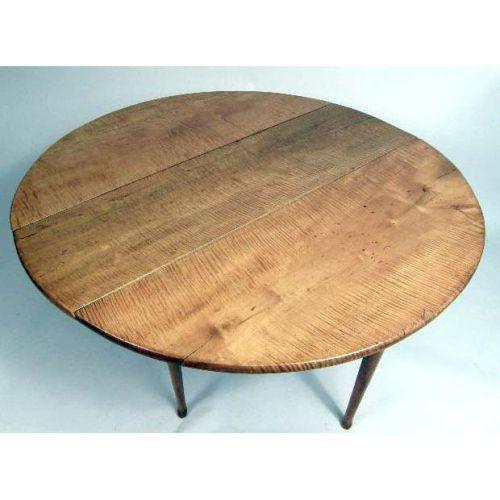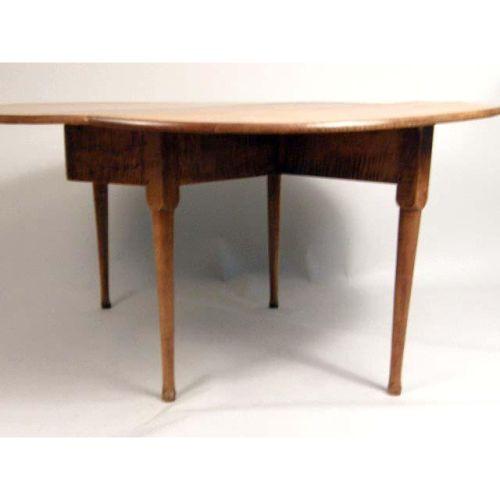 A QUEEN ANNE FIGURED MAPLE DROP LEAF TABLE<BR><BR>New England, probably Massachusetts, feet worn, top repinned, 26-1/2"h x 4`5"l x 17-1/2"d