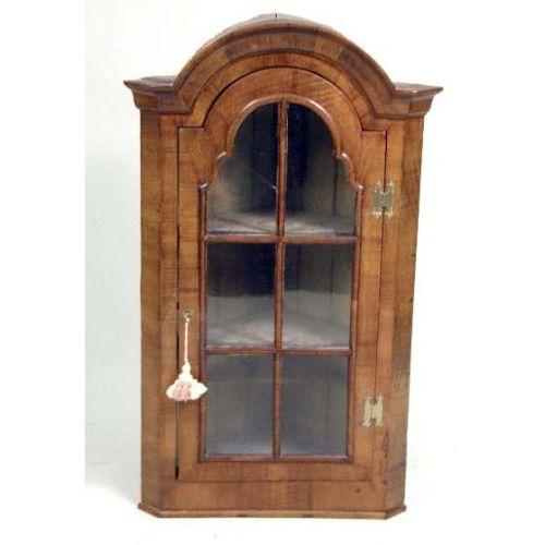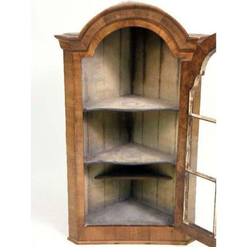 A QUEEN ANNE FIGURED WALNUT HANGING CORNER CABINET<BR><BR>Minor repairs, 39-1/2"h x 25"w x 13-1/2"d