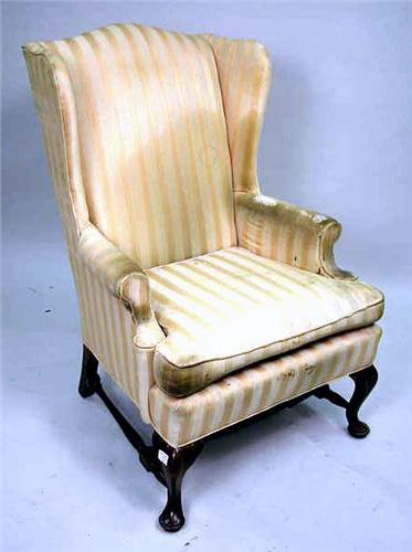 A QUEEN ANNE STYLE EASY CHAIR; In the Massachusetts tradition, distressed