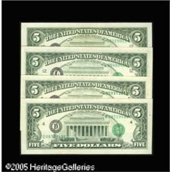 <B>A Quartet of Third Printing on the Reverse $5 Federal Reserve Notes</B></I><BR>$5 1981 Richmond AU; $5 1981 FRN San Francisco Gem Crisp Uncirculated<BR>$5 1985 San Francisco AU<BR>$5 1988 FRN Cleveland AU.<BR> 4 notes Lot:15159