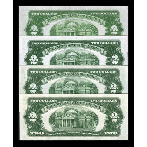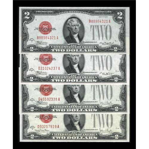 <B>A Quartet of Early $2 Legal Tender Notes. Gem Crisp Uncirculated.</B></I><BR> This gorgeous group of well centered gems includes representatives from the series of 1928C, 1928E, 1928F, and 1928G. Bold overprints and natural paper wave are seen on all of these pretty legal deuces.<BR><I>From The Thomas M. Flynn Collection</B></I><BR><BR><b>Shipping:</b> Coins & Currency (<a target="_blank" href="http://www.heritageauctions.com/common/shipping.php">view shipping information</a>)