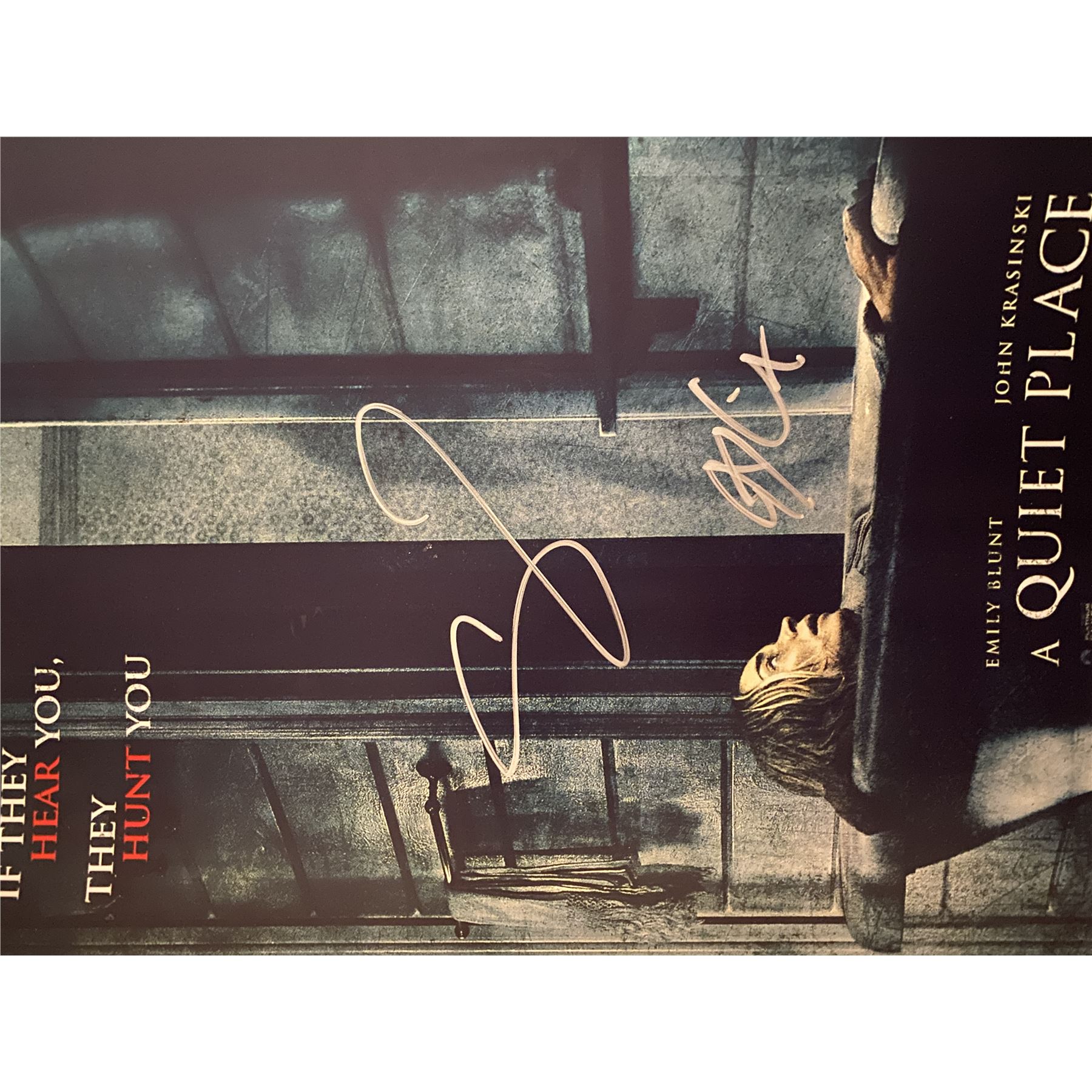 A Quiet Place signed mini movie poster autographed by Emily Blunt and John Krasinski. 8x10 inches