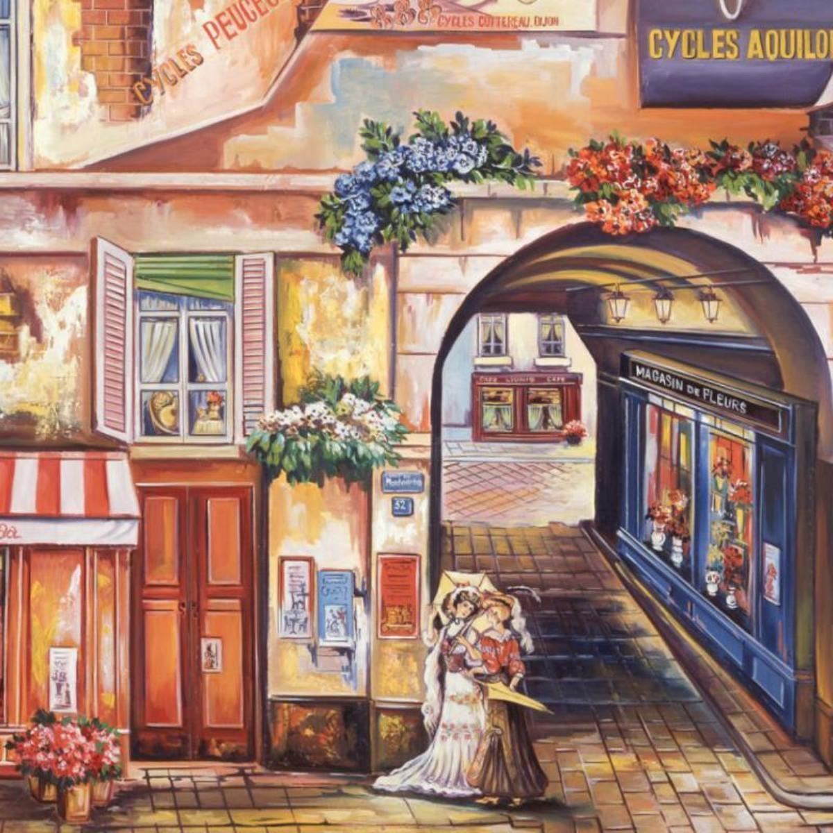 "A Quiet Street" is a limited edition Giclee on Canvas by Alexander Borewko. The piece is numbered, hand siged by the artist, and come with a letter of authenticity. Measures approximately 30" x 40".