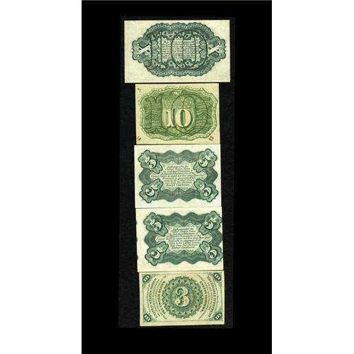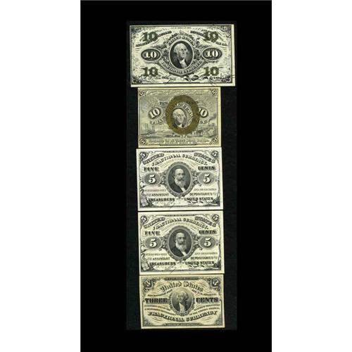 <B>A Quintette of Higher Grade Fractional Notes.</B></I><BR>Fr.1226 3¢ Third Issue <B>Choice New</B></I><BR>Fr. 1238 5¢ Third Issue (2) <B>Choice New</B></I><BR>Fr. 1246 10¢ First Issue <B>New</B></I><BR>Fr. 1255 10¢ Third Issue Choice <B>New.</B></I><BR>A nice starter group of uncirculated Fractional.<BR>