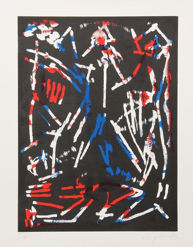 A.R. Penck, Mul, Bul Dang & Sentimentality, Woodblock