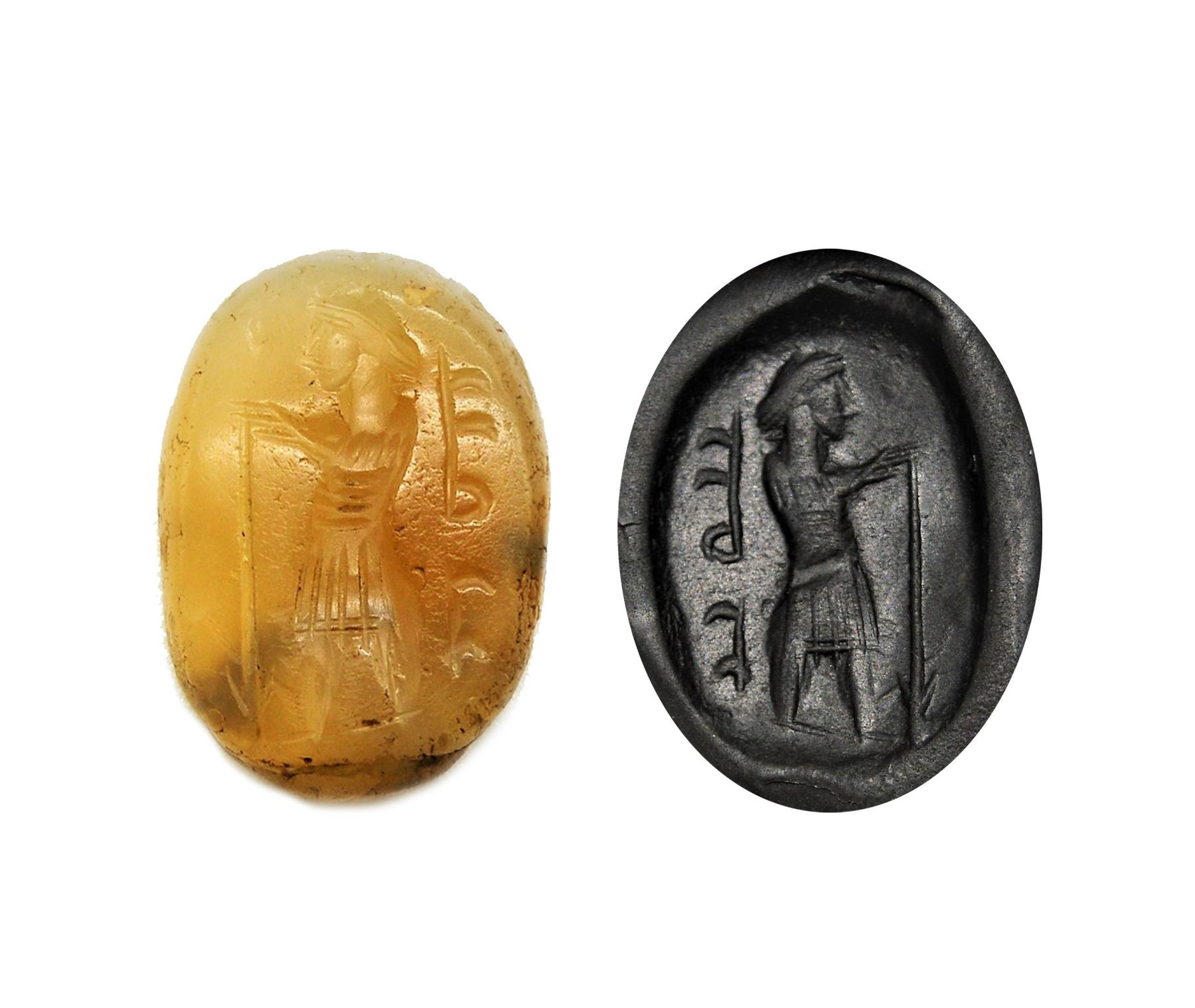 EXTREMELY RARE ANCIENT PARTHIAN AGATE INTAGLIO 1ST-2ND CENTURY BC , Very Rare piece with Aramiac Inscription & Standing Royal Man probably a Worrior.