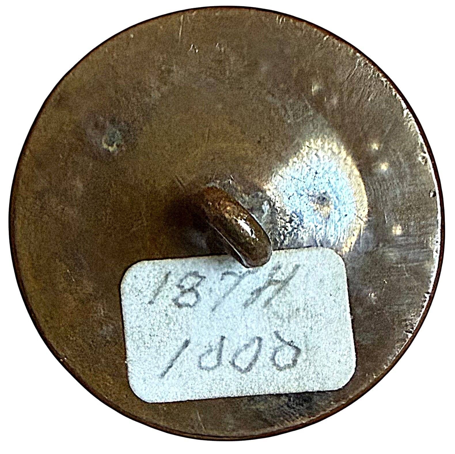 1 Large Medium 18th century copper and Sulphide button. This is a very rare example of 18th century pictorial glass set in copper with an engraved border. Rare in size medium and rare in depiction. The button is a glass center with a sulphide work in the glass, notice the profile head looking at another profile head, very unusual indeed, The sulphide is set over a sky blue background, a recognizable color artists used in the 18th century. The copper is engraved and silvered and in fine condition. Harry Case of Missouri was one of the button worlds true aficionados on 18th century coppers and was said to have the best collection in the country and noted that this example was one of a very rare group ever found in 18th century coppers.