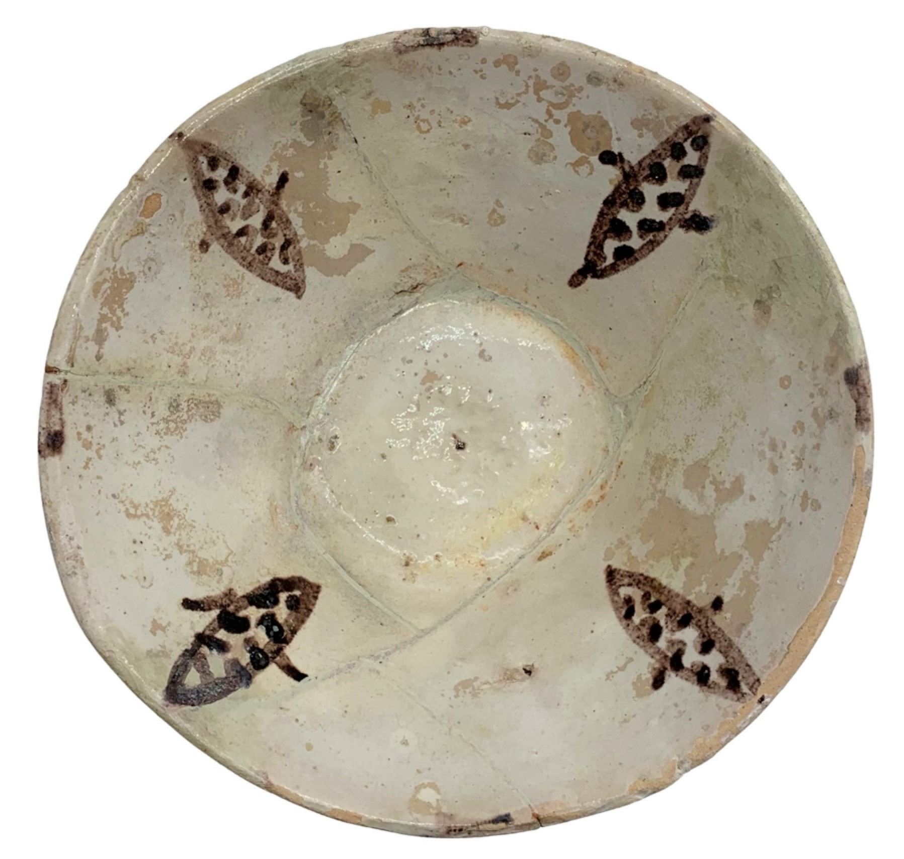 A RARE ANCIENT ISLAMIC SAMANID WHITE & BLACK FISH BOWL, CIRCA 9TH CENTURY.Of rounded form on short