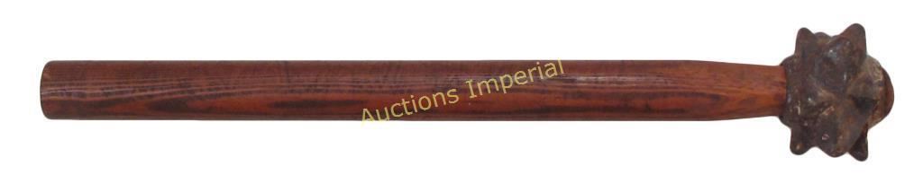 Of characteristic form, however wrought entirely of steel rather than cast in bronze as is more common, with numerous polygonal projections. Replaced hardwood haft. Second half of the 14th century. Excavated. The battle of Kulikovo Plain, fought in 1380 c.e. between the Rus under Prince Dmitri of Moscow and the Mongols of the Golden Horde led by Khan Mamai represents the first victory of the Rus principalities over the Mongols. Overall length 44 cm.