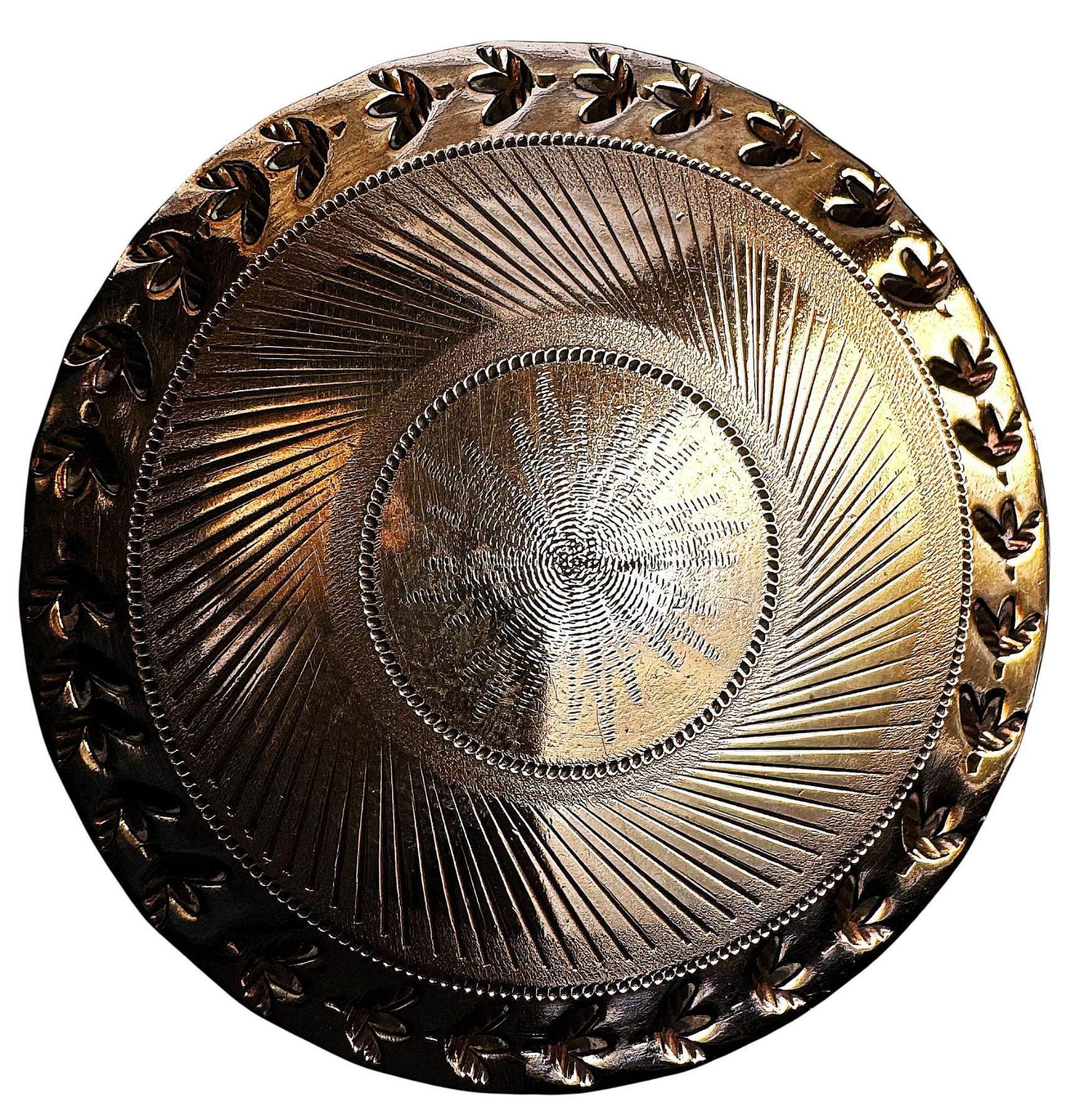 1 Large 18th century intricately hand made example with BEES. This is a tremendously beautiful and intricately hand engraved patterned design on this 18th century copper button. Notice the variety of patterns the maker used in creating this example right down to the outer border depicting BEES. This might have been a ssort maple piece of the designers engraving work that he could offer to respective clients in the day. From the collection of the late Dorothy Peterson of Virginia and a member of the Martha Washington Button Club.