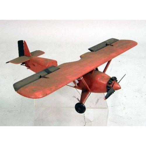 A RED- AND BLACK-PAINTED MODEL AIRPLANE<BR><BR>American, wear, 30"w x 23"l