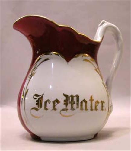 A RED AND GILT DECORATED WATER PITCHER; Made by Greenwood China, Trenton N.J.