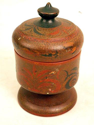 A RED, BLACK, AND YELLOW DECORATED COVE