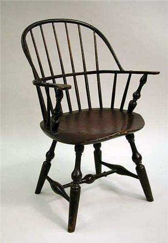 A RED PAINTED SACK BACK WINDSOR ARMCHAIR; Pennsylvania