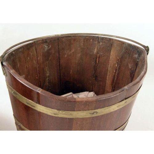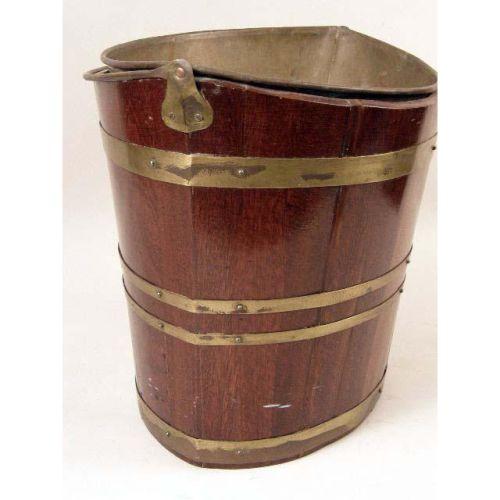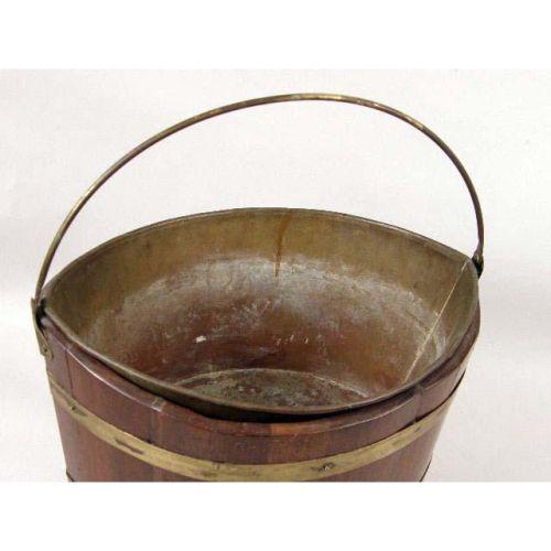A REGENCY BRASS-BOUND MAHOGANY SWING HANDLE BUCKET<BR><BR>English, insert of a later date, 13"h x 15"w x 11"d