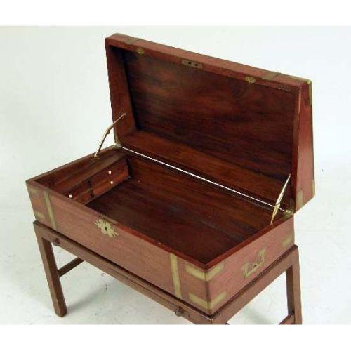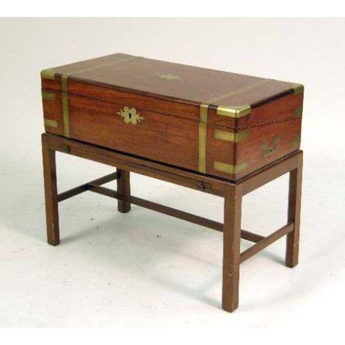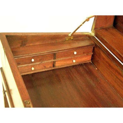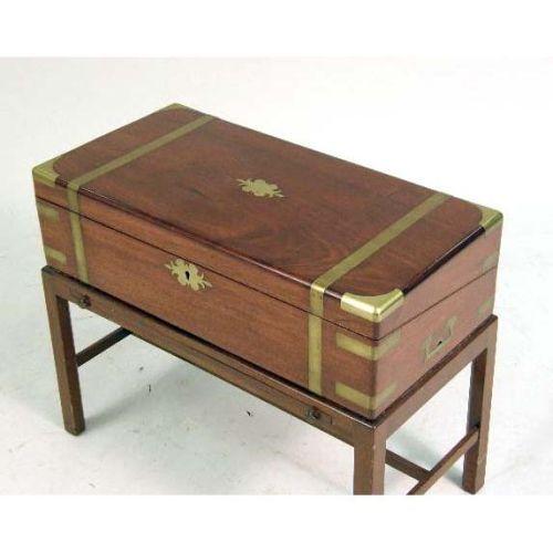 A REGENCY MAHOGANY INLAID LAP DESK ON STAND<BR><BR>English, lacking interior, stand of a later date, 19-1/2"h x 24"w x 12"d