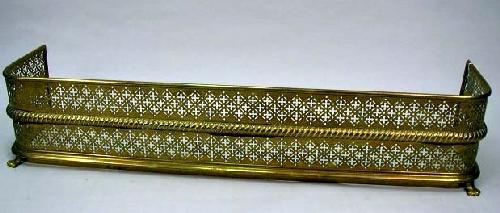 A REGENCY PIERCED BRASS FIRE FENDER; English, with gadrooned band and paw feet, 4'7'l