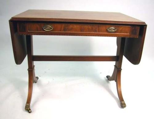 A REGENCY STYLE MAHOGANY SOFA TABLE; 28"h x 35"w x 21"d