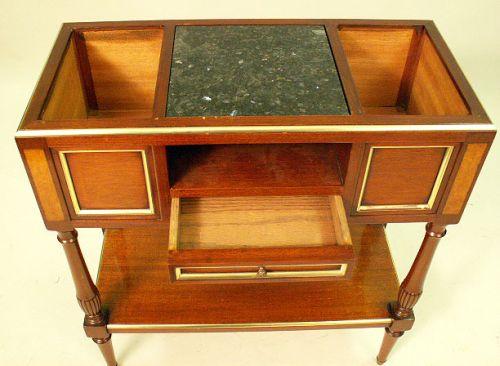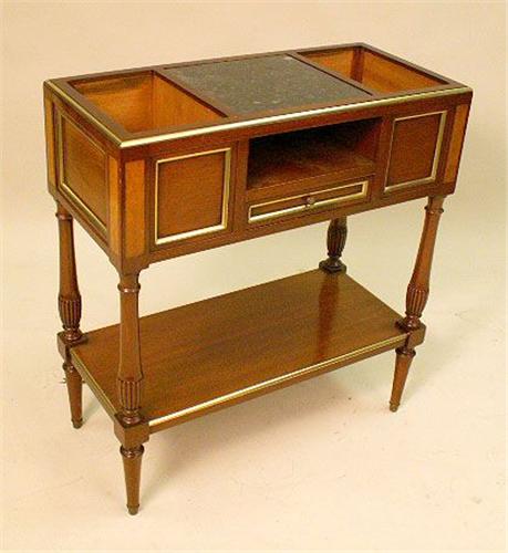 A REGENCY STYLE PARCEL GILT AND INLAID MAHOGANY MARBLE TOP SERVER