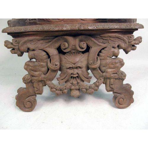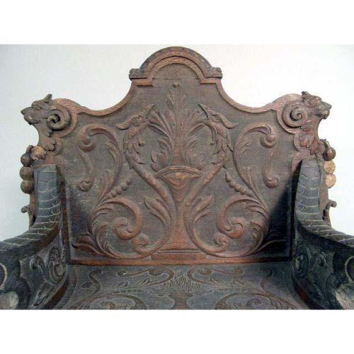 A RENAISSANCE REVIVAL CARVED OAK GREAT CHAIR<BR><BR>In the English tradition, repairs, 46"h