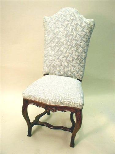 A ROCOCO CARVED WALNUT SIDE CHAIR; Continental, possibly Italian, the serpentine crest above a shell and leaf carved seat on cabriole legs joined by stretchers, ending in hoof feet, repairs