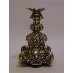 A ROCOCO REVIVAL SINGLE CANDLESTICK, separate bobeche, (unmarked) height 18cm 30-50...