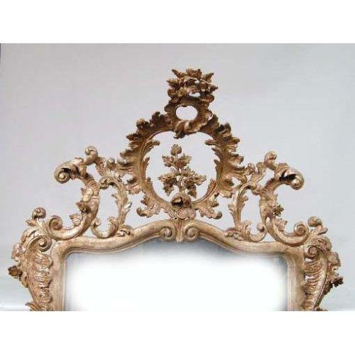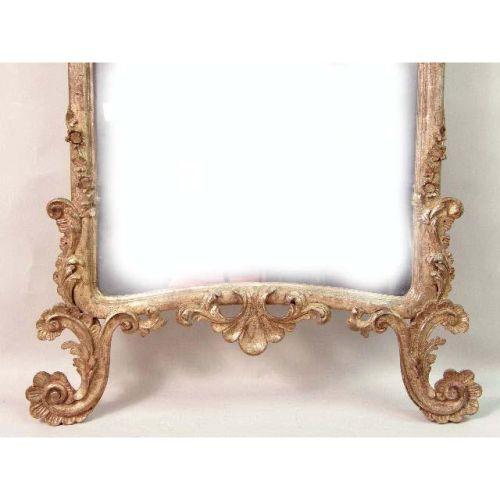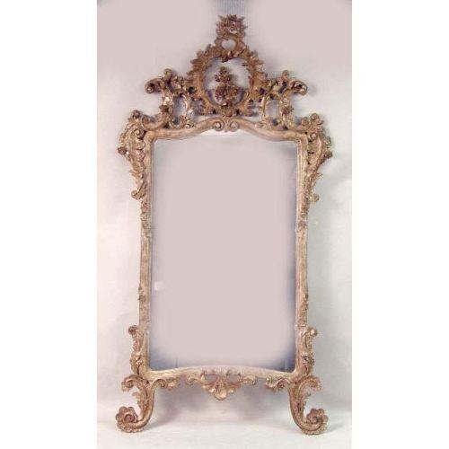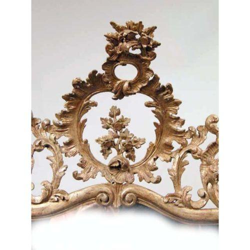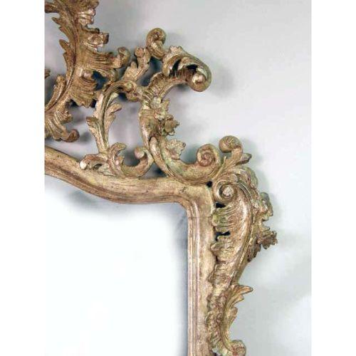 A ROCOCO-STYLE GILTWOOD OVERMANTLE MIRROR<BR><BR>In the Continental tradition, retains an old plate, 4`6"h x 29"w