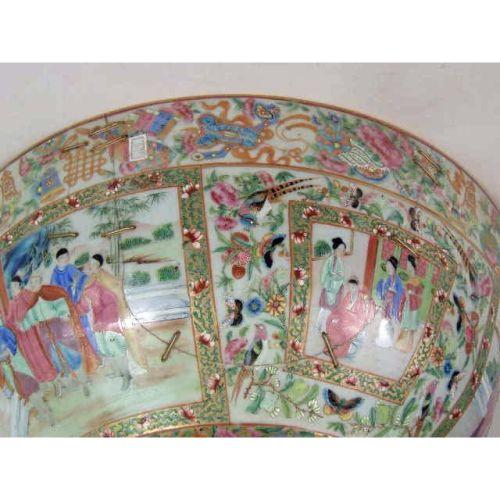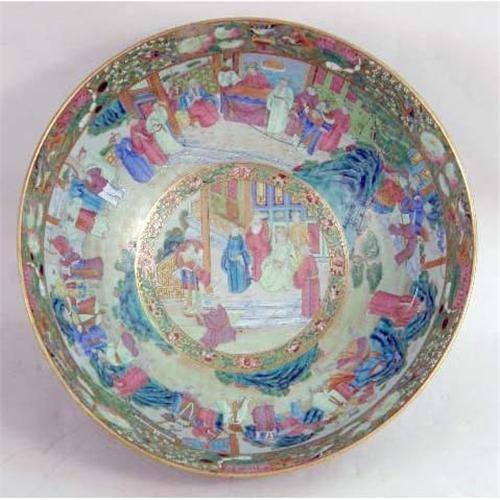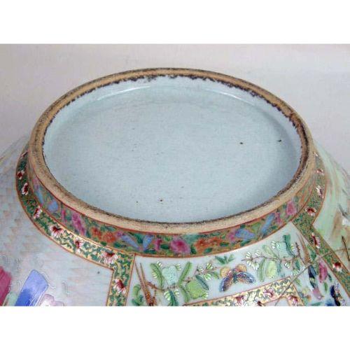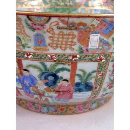 A ROSE MEDALLION PORCELAIN PUNCH BOWL<BR><BR>Cracks, chips, repairs, and losses, 14-1/2"dia. x 6-1/4"h