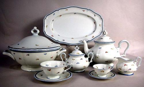A ROSENTHAL, GERMANY "CHIPPENDALE" PATTERN PARTIAL PORCELAIN DINNER SERVICE; Comprising: 21 dinner plates, 12 salad plates, 11 rimmed soup plates, 7 teacups & 8 saucers, 8 small teacups & 10 saucers, a covered tureen, 2 oval plates, 2 round serving bowls with underplates, a teapot, a covered sugar bowl & cream jug, a gravyboat with attached underplate, losses