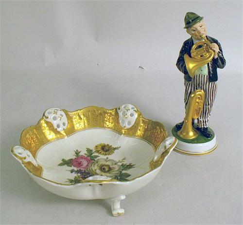 Stamped "Rosenthal Germany". 7 3/4"h. Together with a polychrome and gilt decorated circular footed reticulated bowl stamped "Rosenthal Germany Molieri #1620/58". 2 pieces.