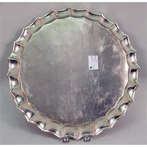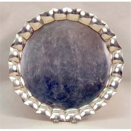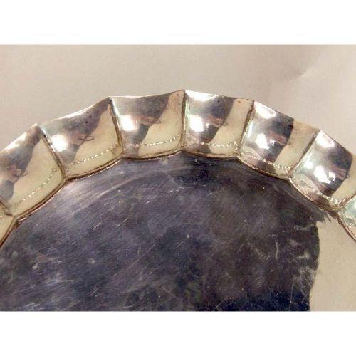 A ROUND STERLING SILVER TRAY<BR><BR>With fluted edges, 14"dia.