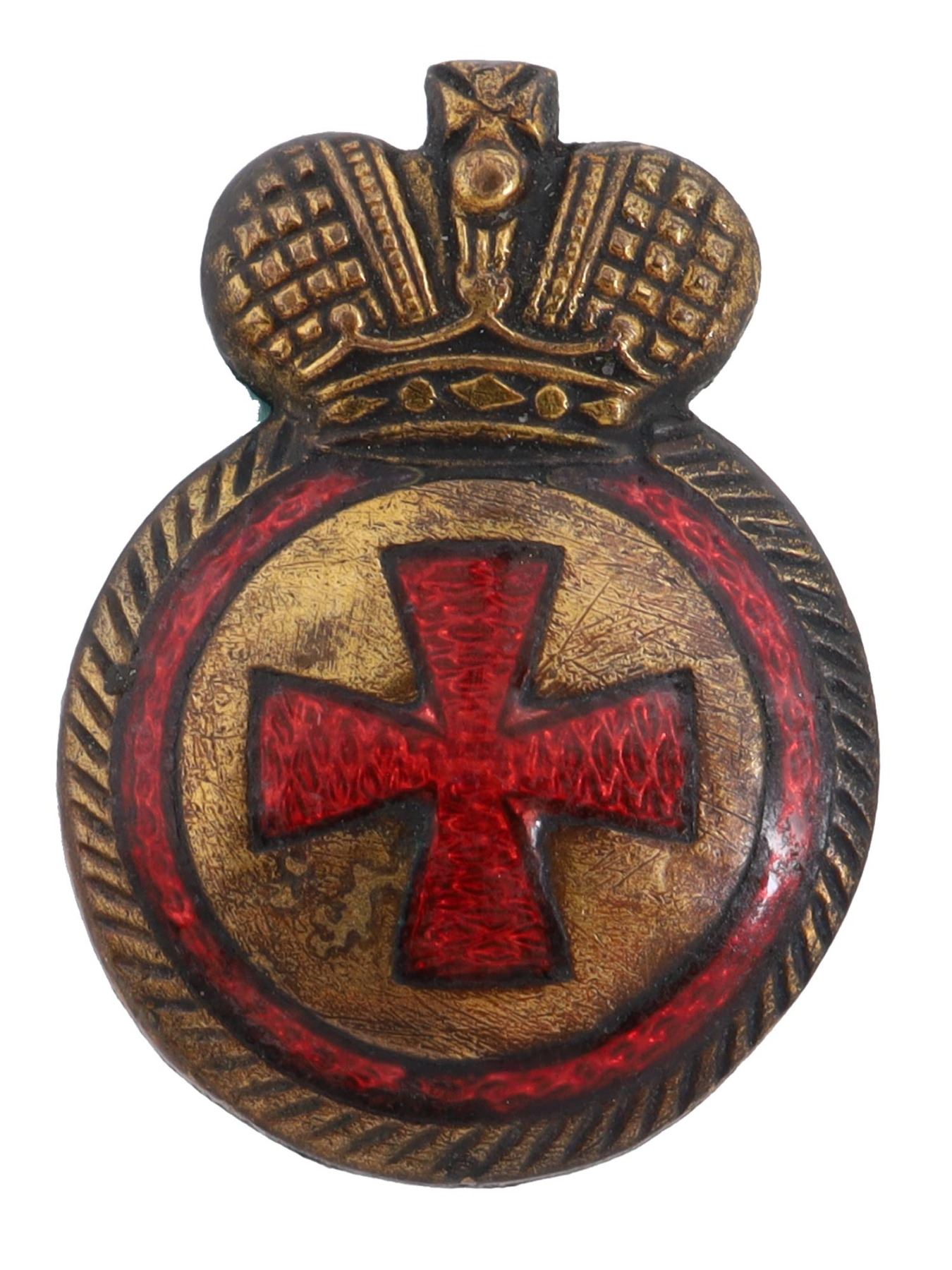 A miniature gilt-bronze and enamel Imperial Russian Order of St. Anna, 4th Class in bronze with red enamel.