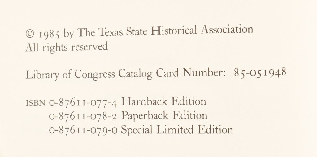 1985 edition, fine condition. Published by the Texas State Historical Association.