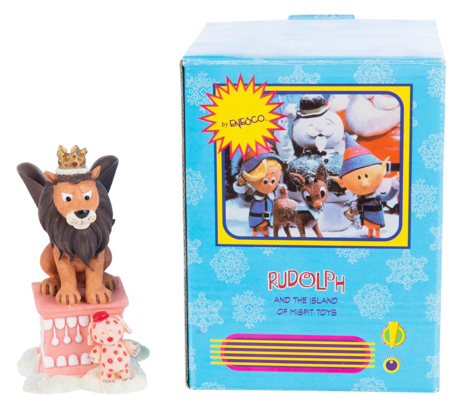 (Enesco, 2000) A Rudolph and the Island of Misfit Toys resin figurine of King Moonracer and Spotted Elephant figurine titled “A Toy Is Never Truly Happy Until It Is Loved By A Child.” Measuring 4” x 2.25” x 2” deep with its original box measuring 5” x 4” x 4” deep, the figurine is in fine condition.