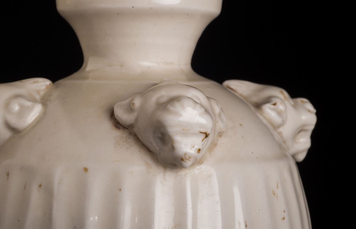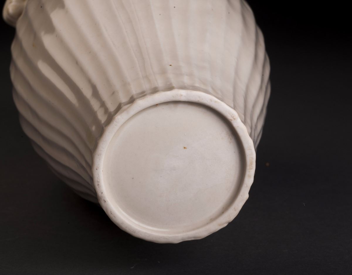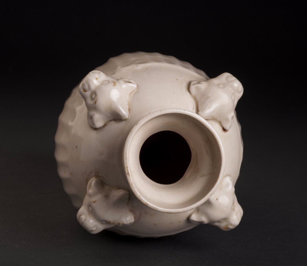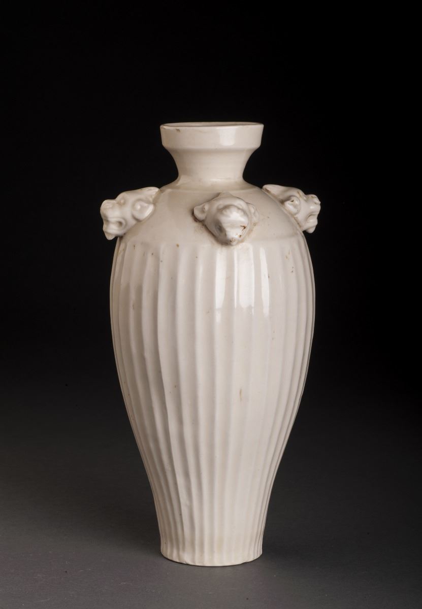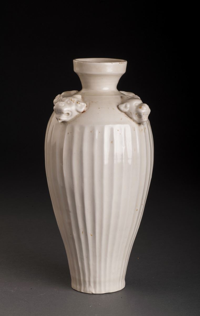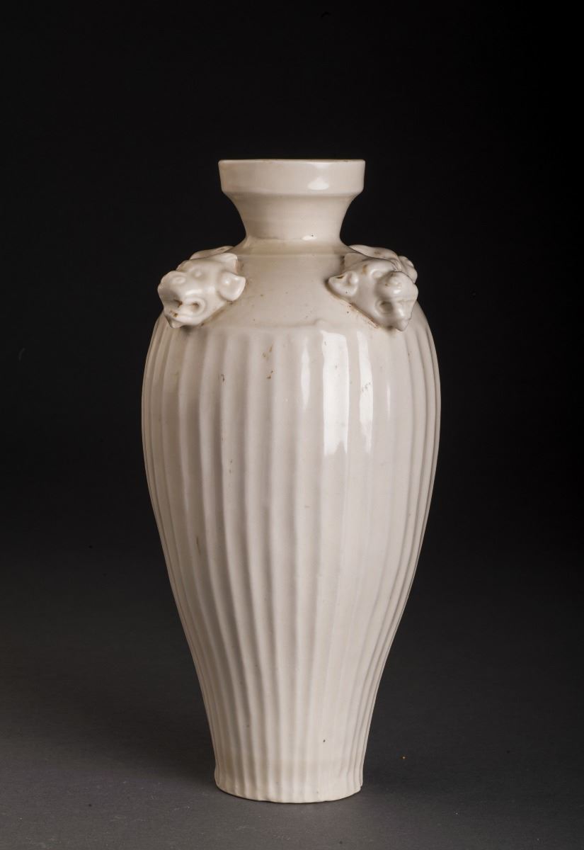 A Fine And Rare White Glazed Porcelain Vase In Good Condition, Heavily Potted With The Chrysanthemum Incised At The Cavetto. Raised On The Small And Flat Foot Down The Bottom. With Four Delicate Designed Chinese AncientAnimal-head Shaped Handles On The Round Shoulder. Slightly Flaring But Heavily Potted Mouth At The Top.