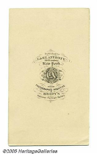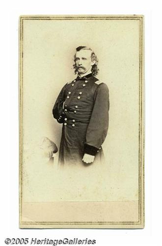 <B>A Rare Brady Carte de Visite of Custer, in Superb Condition</B></I> One of the best George Armstrong Custer images, by Brady's E. and H. T. Anthony subsidiary. Virtually mint but for a little extremely minor surface paper flake at one corner on verso. Lot:251
