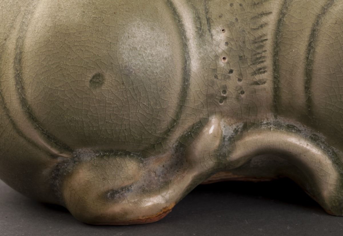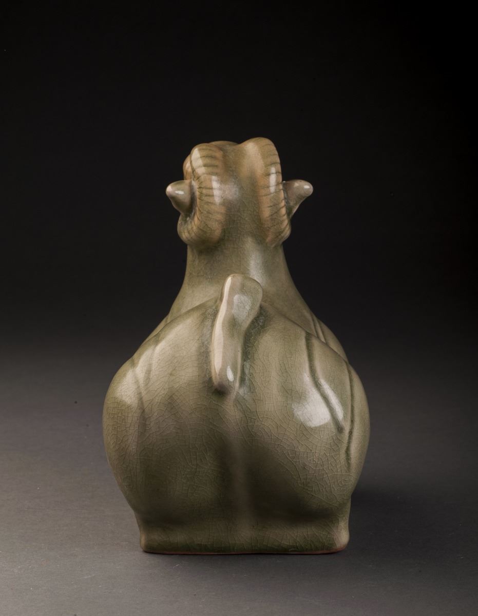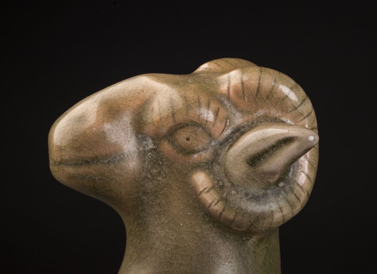 A Fine And Rare Porcelain Sheep Statue In Good Condition, Within The Alternative Light Blue Glaze Throughout. The Statue Siting With All Its Four Legs Folded, Face Vividly Expressed.