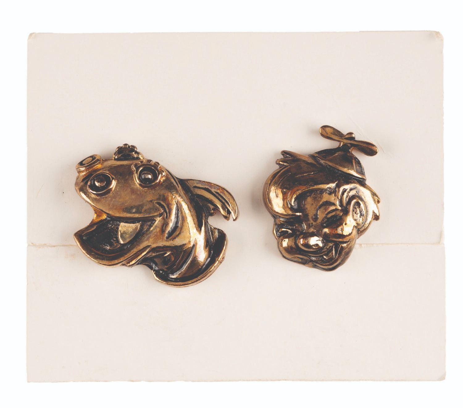 (Clampett, 1950s) A rare pair of Beany and Cecil earrings gifted to the cast and crew of the original “Time for Beany” series. Measuring 1” x 1” each, the earrings are in very good condition with light oxidation from age.