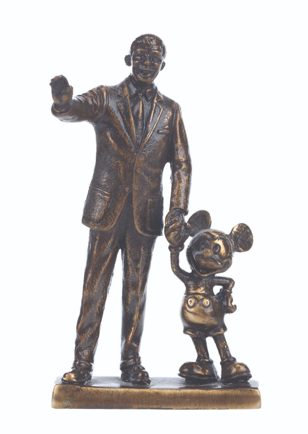 (Disney, 2001) A miniature bronze figure of the Walt and Mickey Partners statue. Produced in a limited edition of only 700, this piece was originally only available to attendees of the third annual Walt Disney Art Classics Convention at Walt Disney World in May of 2001. Measuring 2” tall, the piece is in fine condition, with the original box and COA.