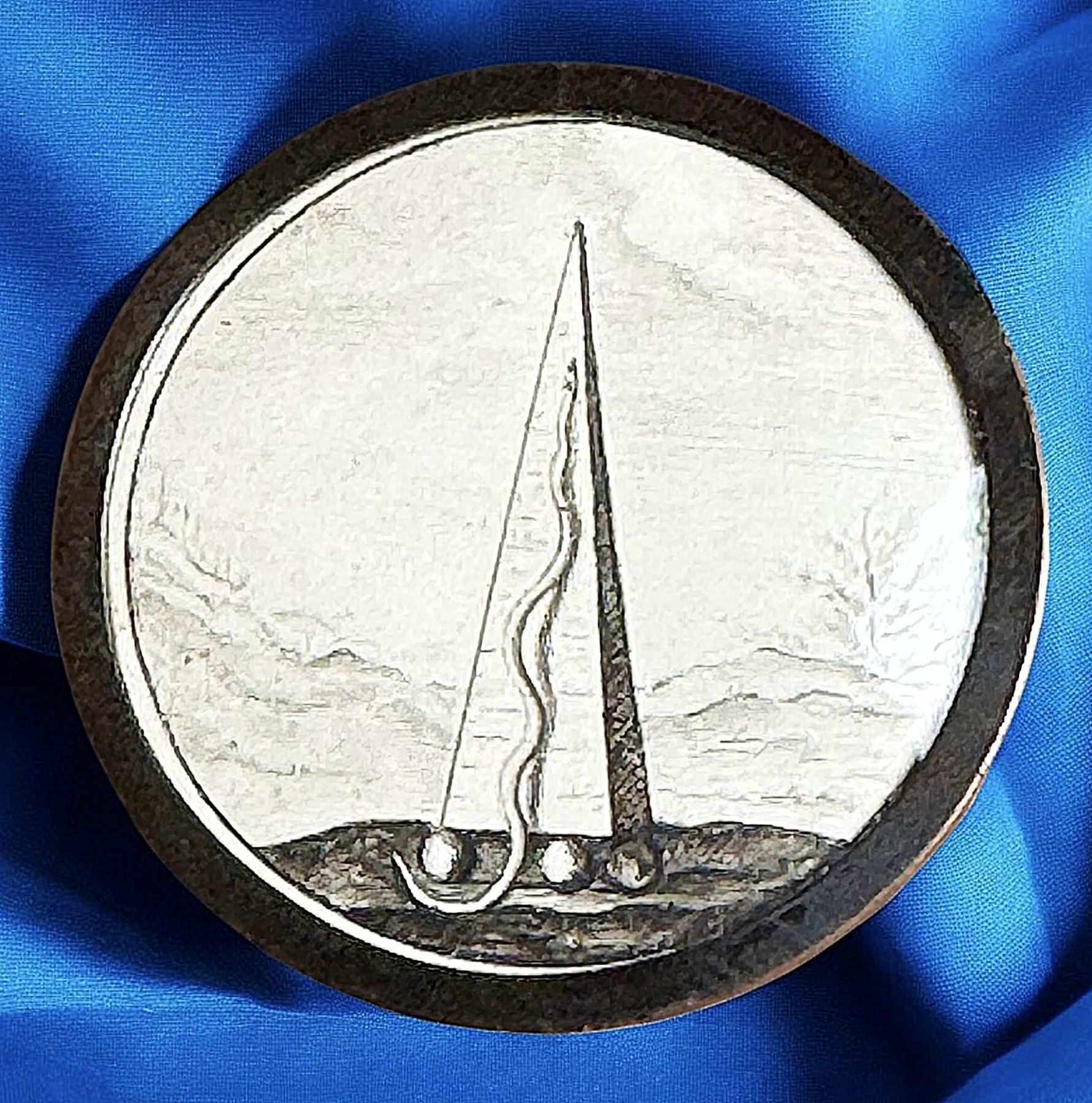 1 Large 18th century under glass example with a snake. Here is an absolutely gorgeous example of 18th century craftsmanship. The button comes from a complete set of 6, (set shown in original box), but you are bidding on one from the set, the image of the boxed set is for you to see the entire set. The initials in the center are beautifully engraved and highly detailed. The initials are bordered by a beautifully punched design noticeabe from the back as well. The buttons are not round but scalloped on the edge. The silver is a silver wash with a copper hue depending on the light you view them in. As seen in the back image the silver wash is intact as it is on the front. Again a gorgeous example. NOTE: You are bidding on ONE button from the set but we have included an image pf the origonal boxed set. From the collection of the late Dorothy Peterson of Virginia and a member of the Martha Washington Button Club.