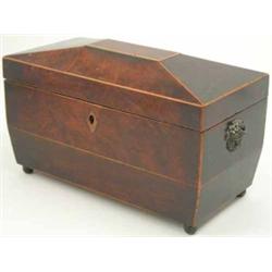 A Regency mahogany sarcophagus tea caddy, 12ins....