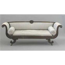 A Regency mahogany scroll end sofa, with reeded frame, anthemion motifs and scrolls legs 6ft 4ins £1,200-1,500