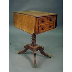 A Regency mahogany worktable, with drop leaves, 2 frieze drawers and a turnedcolumn raised on quatrepartite base. 20 7/8" (53cm) wide Est.500/800